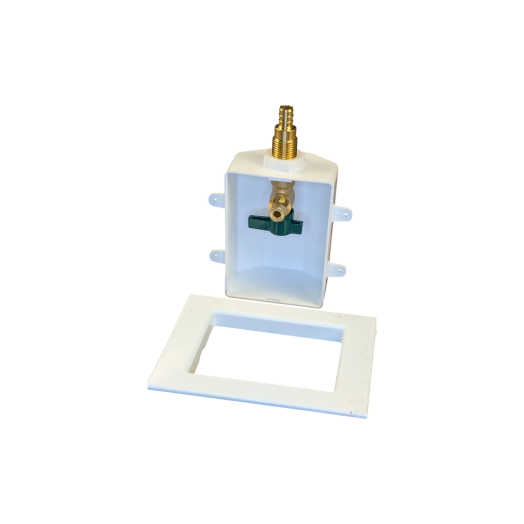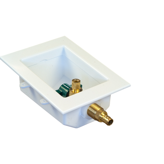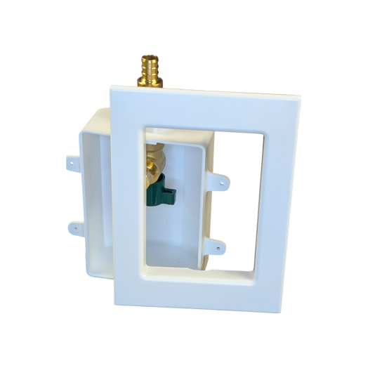 This ice maker outlet box creates a clean, recessed connection point for refrigerator water supply lines. It helps protect the supply connection behind the fridge while keeping the installation organized and service-friendly. A common choice for plumbers and contractors during kitchen rough-ins and renovation upgrades.